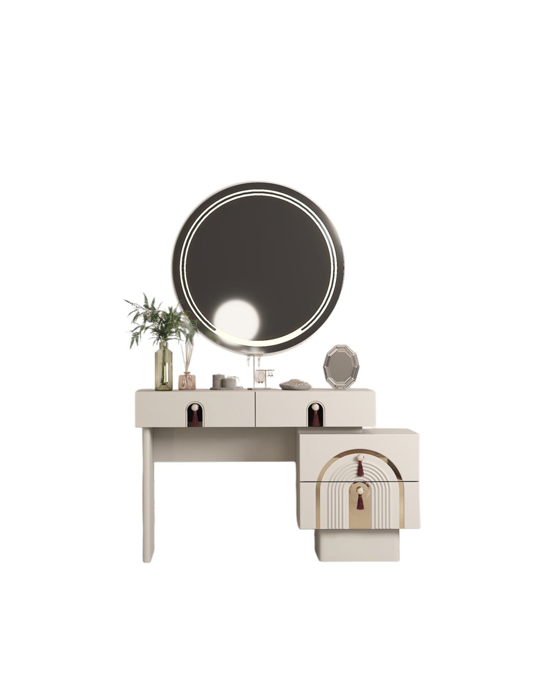 Tasarım detayı: Kavisli gold ve aynalı kapak detayları