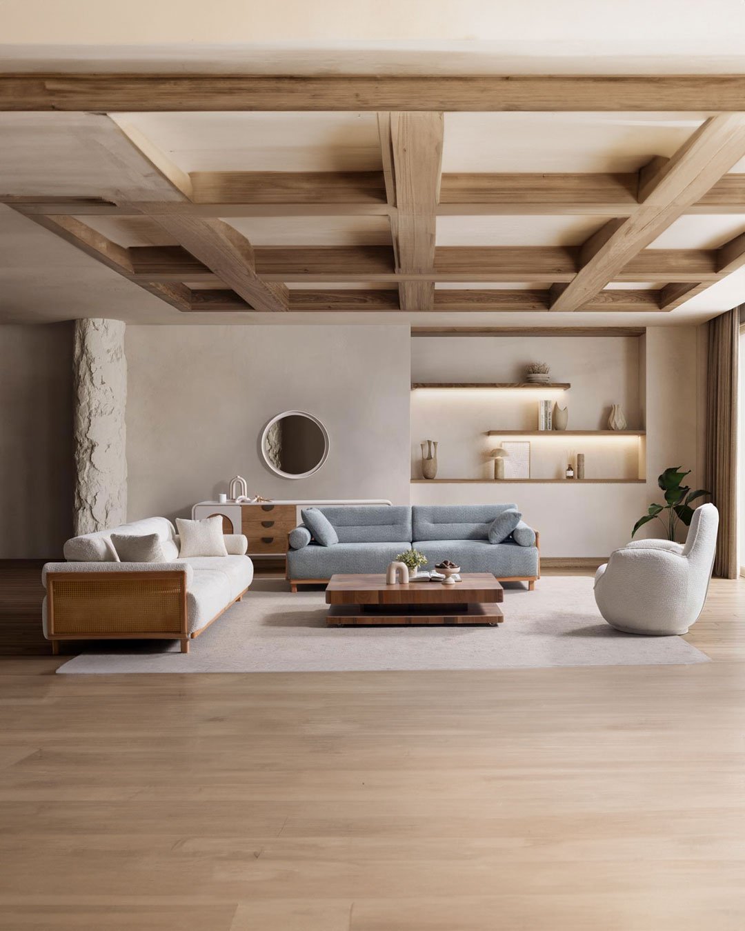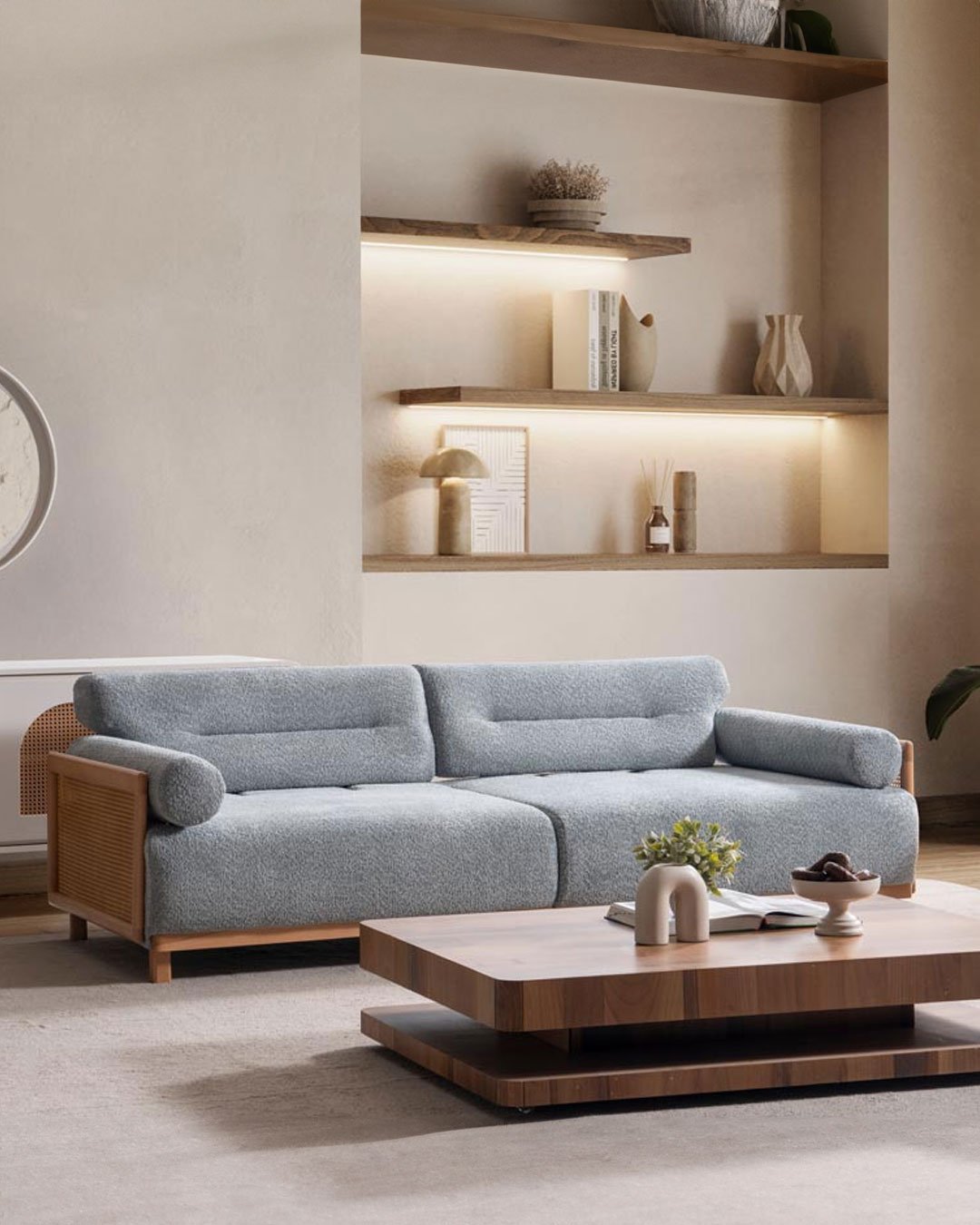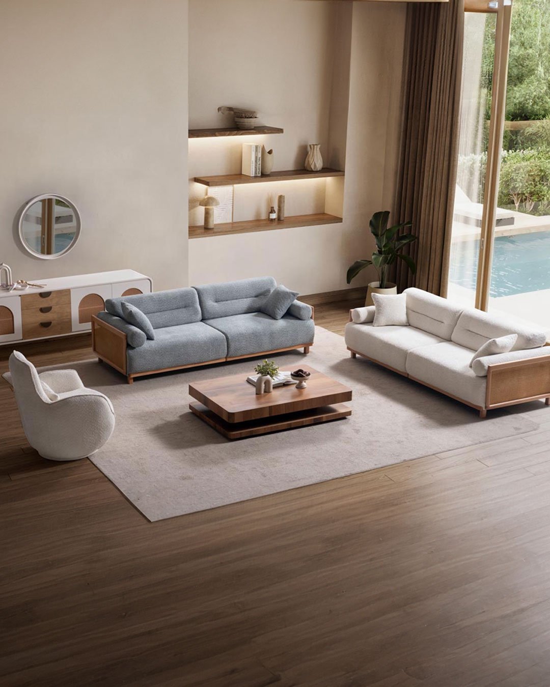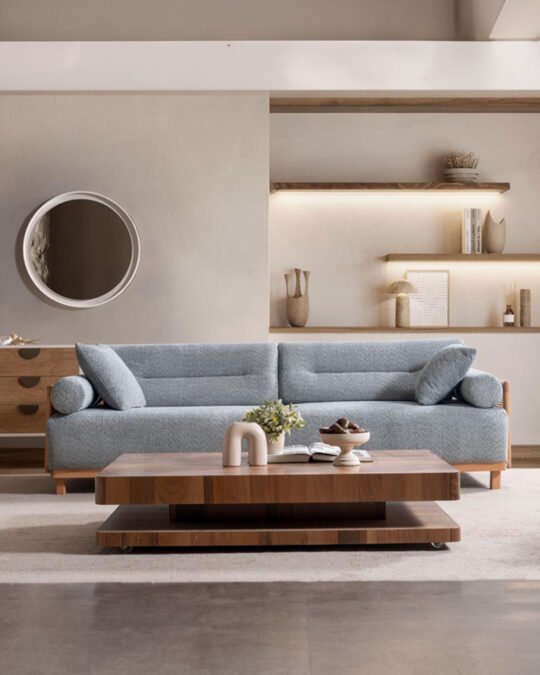 Sovano NATURA Koltuk Takımı, modern-minimal çizgisi ve doğal ahşap detaylarıyla salonunuza sıcak, dengeli bir görünüm kazandırır. Yumuşak hatlı form dili ve geniş oturum yapısı sayesinde günlük kullanımda konforlu bir deneyim sunar. Takım, hem açık tonlu dekorasyonlarla hem de koyu aksesuarlarla kolayca uyum sağlayan zamansız bir tasarıma sahiptir.